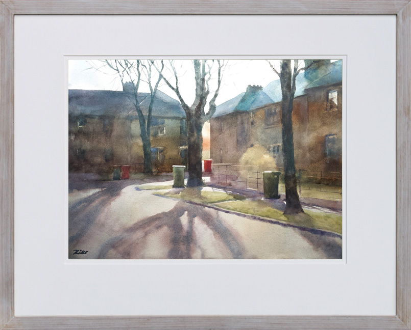 My architectural watercolours often include the surrounding life of a street—neighbouring houses, cars, people walking, or children playing. This approach captures the true atmosphere of the place, making your original artwork truly unique and personal.